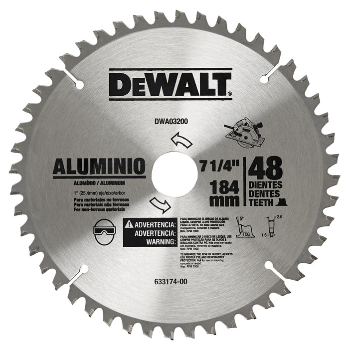 Disco Sierra 7 ¼ ”X1” 48 Dientes Aluminio DEWALT DWA03200
